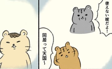 「使えない嫁だよ」「同居って天国~」義母と夫の言葉に、プツンッと何かが切れて…【くま育児2~くまま都会へ行く~・16】