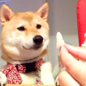 Instagramに投稿されたのは、柴犬さんに梨をあげようとしたときの様子です。「マテ」をしていた柴...