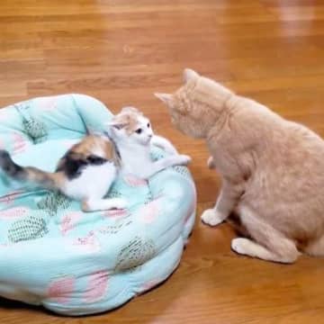 Youtubeチャンネル「ポンタポンタ」に投稿されたのは、飼い主さん宅の先住猫のチャイちゃんと子猫の...