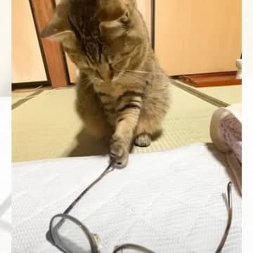 YouTubeチャンネル「猫ッチョファミリー」に投稿されたのは、元野良猫の「トラ」君がなかなか起きて...