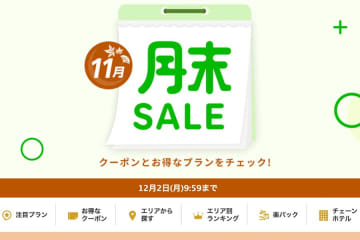 楽天グループは、旅行予約サイト「楽天トラベル」で、「月末SALE」を11月20日午前10時から12月...