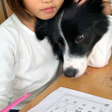 女の子が学校の宿題をしていたら、横にいた犬が…とんでもなく健気な『寄り添って待つ姿』が18万表示「可愛い」「お利口さん過ぎる」と絶賛