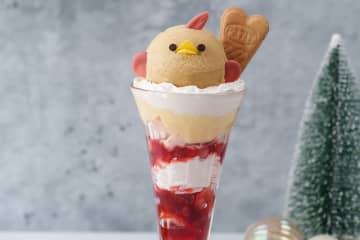 ひよこ型スイーツ「ぴよりん」クリスマス限定パフェ、甘酸っぱい苺×メープルアイスのリッチな味わい