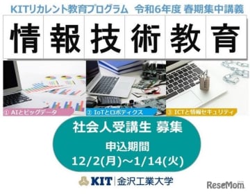 金沢工業大学は、社会人が学生や教員と共に学ぶ「KITリカレント教育プログラム」の募集を2024年12...
