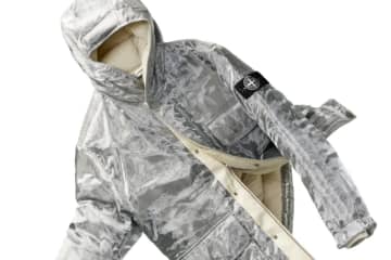 ストーンアイランドのシルバーダウンジャケット、“まるで液体”のように光輝くボディ