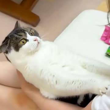 『嫌な予感がした猫』逃亡を企てるも即確保されて…『まさかの絶叫』が12万再生「嫌すぎてフリーズw」「おててがピーンww」爆笑の声多数