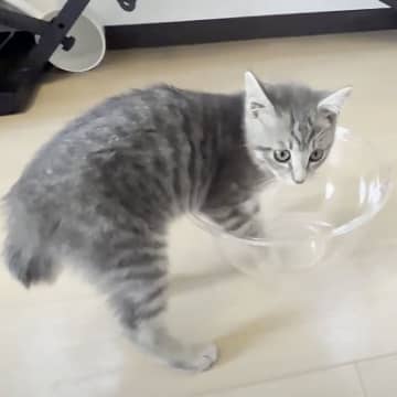 子猫に『透明なボウル』をプレゼント→遊んでる間にお風呂を済ませたら…『まさかの光景』が1万7000再生「全てが可愛いw」「液体w」