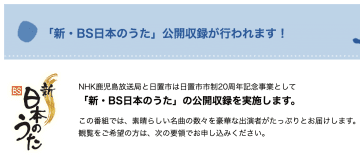 ゲストがすごい!「新・BS日本のうた」が日置市に!