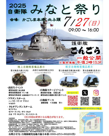 今年も「自衛隊みなと祭り」の開催が決定しました!普段なかなか間近で見られない自衛隊の装備品展示や、家...