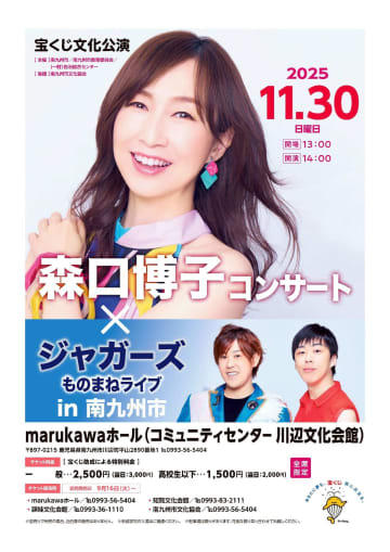 森口博子とジャガーズが南九州市川辺に降臨!宝くじ文化後援事業だから2,500円で見られるっぽい!