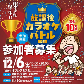 【参加無料・賞金10万円!】鹿児島の学生カラオケ自慢、オプシアに集結せよ!「放課後カラオケバトル2025」11/30までエントリー受付中