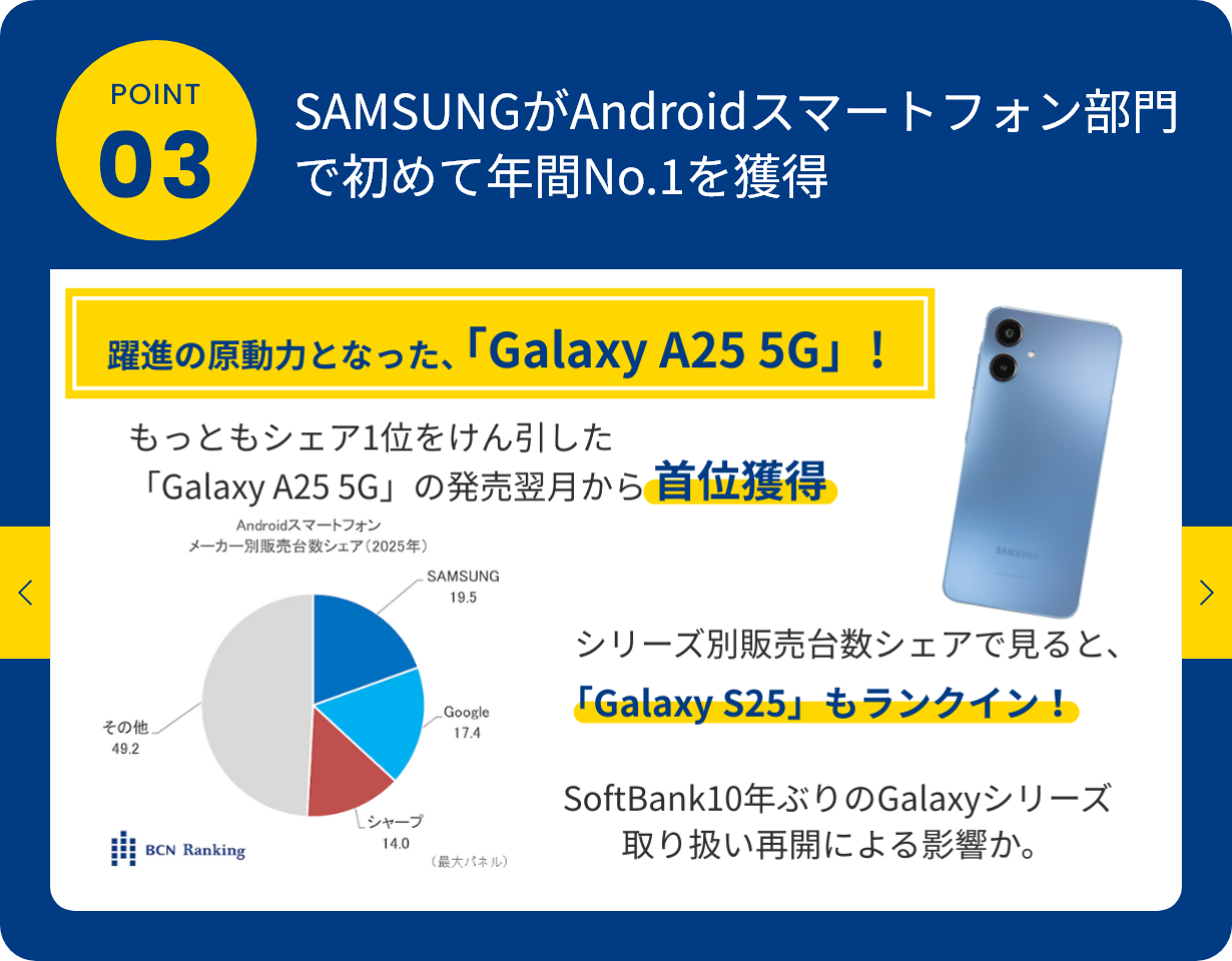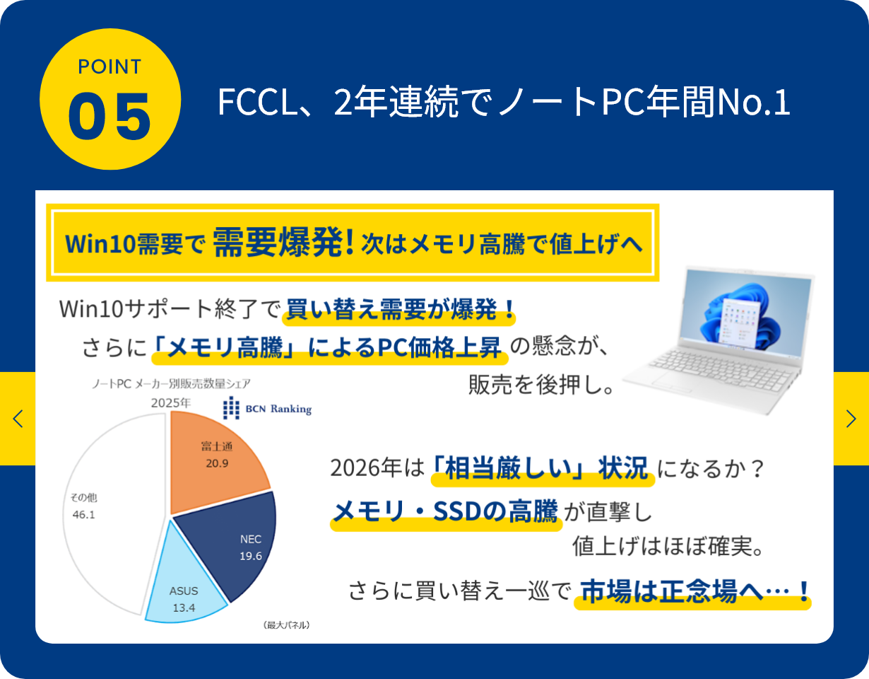 「BCN AWARD」は、全国の量販店のPOSデータを日次で収集・集計した「BCNランキング」に基づき、パソコン関連・デジタル家電関連製品の年間(1月~12月)販売数量No.1のメーカーを称えるものです。