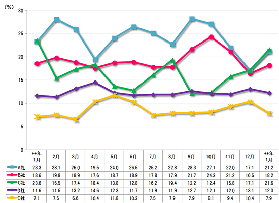 - メーカー別のシェア推移