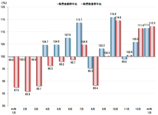 - 販売数量・金額の伸び率や指数推移