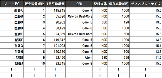 - STEP 3 PCやテレビ、スマートフォンなど約150品目を販売数量や販売金額で順位付け