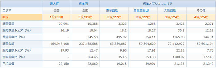 | エリア | 全国データ(エリア別集計データは有料オプション) |