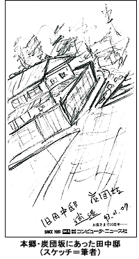 田中さんの自宅は、三度ほど食事に呼ばれて訪ねた。本郷の炭団坂の上にあり、旧・坪内逍遙邸だったという由緒ある屋敷に住んでおられた(いまは、日立本郷ビルになっている)。奥さんの実家なのだそうだ。茶室が二つもあった。田中さんは、元々は法律書版元・有斐閣の編集者で、ジュリストや小六法を企画し大当たりさせた人だ。会社を儲けさせてくれたお礼だと言って、同社の社長が寄贈してくれた茶室だという。