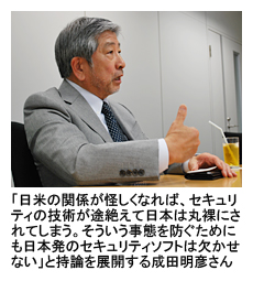 奥田 日本発のセキュリティソフトは絶対に必要という成田さんの考えに賛同します。その情熱の火を絶やさず、おおいに頑張ってください。