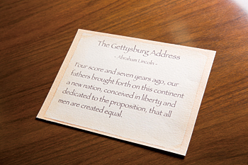 田中社長は「新製品オタク」と自称するほど新しいもの好きで、古い品物はほとんど残していないという。しかし、唯一、古いけれど大切にしているものがあるそうだ。それがリンカーンの演説原稿である。18歳のときに友人に勧められて暗記し、今でもそらで言えるそうだ。
