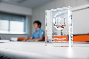 本文に紹介した「Tuna-Sand」がロボット大賞を受賞したのは2012年。当時、中谷さんはすでにJAMSTECに在籍していたが、恩師である浦教授は「君がもっていなさい。功労者は君だ」と花をもたせてくださったという。