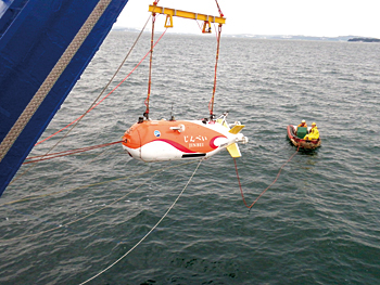 中谷 大学在籍時代には、Tuna-Sandの実海域実験のために、JAMSTECから「よこすか」や「なつしま」という支援母船を借りて航海もしました。JAMSTECには、「研究船利用公募」という制度があり、日本全国から広く研究課題を公募し、優秀な課題には1~2週間程度、船を利用させてくれるんです。2010年の航海では、新潟沖メタンガスハイドレート地帯の水深950mの海域においてTuna-Sandを潜航させ、AUVによるハイドレート地帯の精密画像観測に世界で初めて成功し、新聞やTVニュースでも大きく報じられました。また、その頃からJAMSTECの方々にはお会いしていて、ぜひここで働きたいと思っていました。