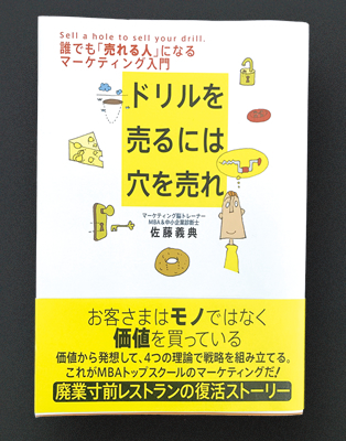 マーケティングの基礎を学ぶためにうってつけと紹介してくれた本が、『ドリルを売るには穴を売れ』(佐藤義典著・青春出版社)。2006年発行のロングセラーだ。エム・エス・シーに入社した営業マンには、必ずこの本の読書感想文を提出させるそうだ。