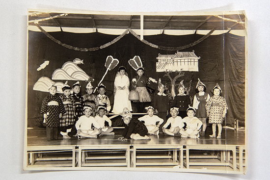 保育園時代、浦島太郎のお遊戯を披露したときのスナップ。最前列の右から2番目が神野哲州氏、その左にいるのが牧誠氏。65年前、5歳のときのひとコマだ。