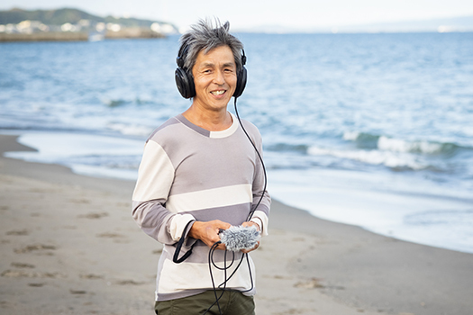 【神奈川県・三浦市発】自然の音と曲が一体になったインストゥルメンタル『MOTTAINAI SOUND』や、女優(南果歩さんや鶴田真由さん)のナレーションと音楽で綴った昔話『おとえほん』などを企画プロデュースしている守時さん。楽曲の中には、2011年の東日本大震災で被災した福島県飯舘村と相馬市にボランティアで行ったときのものもある。4年目からは飯館村から招待されるようになった。地域おこしや街作り企画、神社での奉納コンサート、廃校合併などの校歌編曲etc。彼の楽曲には背景があり、理由がある。それらを知ると、また曲の聴こえ方、受け止め方も違ってくる。守時さんの優しさって、どこからくるのだろうか。話の中で「親父に似てきたと感じる」とあったが、あるときふと見つけた真摯な生き方が、音楽にあらわれたのだろうか。これからの作品がとても楽しみになってきた。帰りがけに、守時さんと近くの三浦海岸を散歩した。爽やかな風が頬をなでた。