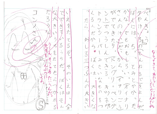 「大きくなったら、おしろ三つぶんの大きいいえをたてるぞ」という幼い頃の夢が書かれている。今、そんな家を建てたいと思っているかどうかは別だが、渡久地さんと話していると、そうした夢を現実のものにする力を秘めているように感じる。