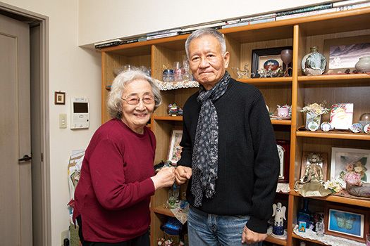 目は口ほどにものを言うーー。野村路子さん宅の呼び鈴を押す。玄関のドアが開く。背中が少し丸い。初対面の私たち編集クルーを一瞥する。「ドキッ」とする鋭さだ。きつい目線でなく、身体を見通すような目力だ。きっと、路子さんはレントゲン撮影のように人を透視し続けてきたのだろう。目力には、生まれもった色合いとパワーがある。しかも、鍛えるほどに変化する代物でもある。体力とも異なる種類の力だと思っている。目線が合った瞬間からインタビューは始まった。居間の椅子に腰掛けながら周囲を見回す。棚には路子さんの生きてきた“時”が並んでいる。お気に入りの品をそのつど並べるうちに、頭の中が順不同な形となって姿を現した、といった様相だ。最初の一品が棚に置かれたのはいつ頃だったのだろうか。