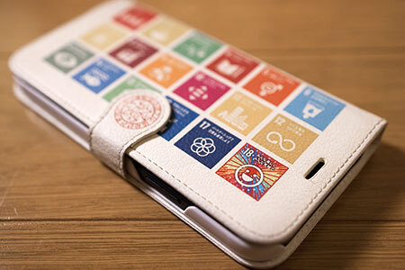 17項目の目標を掲げたSDGsのステッカーに、なぜか18番目のマークがついている。「17項目達成しても笑顔がなければあかんやん」ということで、最後に笑顔のマークを入れた。「十八番」は「おはこ」とも読む。自社の得意技で持続可能社会をつくることも社会貢献だと、竹林さんは語る。