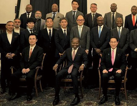 野呂さんは今年5月、このミッションに参加し、モザンビークとモーリシャスを訪問した。ちょうど、この時期にアフリカ4カ国を歴訪していた岸田首相は、モザンビークでの交流会に参加。2列目左から3人目が野呂さん。1列目右端が岸田首相。