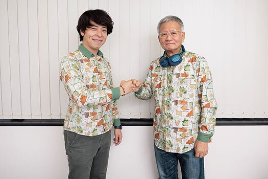 野呂さんと話し込むほどに、同質なものを感じた。こうして、対談のシーンを反芻しながらも深く感じる。彼は30歳年下だ。心のあり方には年齢差がないことを確信している。ひょっとすると、10代にも同じ仲間がいるかもしれない。“年の功”があるとすれば、それはわが身を理解し、そのあり方を語ることができる年功ということだろう。そろそろ『千人回峰』も次の世代にバトンタッチするお年ごろだ。その時期が近づいてきたからなのか、自分の心の風景を綴ってしまった。ツーショットでは野呂さんに無理を言って譲っていただいた同じシャツを着ている。アフリカ大陸の54だか55カ国だかのイラスト入りである。「人とは何ぞや」のお題がようやく楽しいものになってきた。(直)