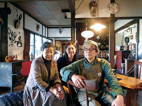 「物をつくることと破壊することには、共通するところがある」と藤田さん。今あるものを否定して、その先に何かを見つけなければいけない。その何かは、破壊するパワーがなくては生まれてこない。何かの真似では、はっとするものは生まれないのだと。藤田さんが「縄文土器は古びた感じがしない」と評する理由が、少しずつ理解できてくる。工房からアトリエに移動し、作品の椅子などを見せていただいた。その中に、縄文をモチーフにしていると思われるような作品があったが、「まだまだ、もっと昇華させないといけない」と満足していない様子だった。ちなみに、一番お気に入りの椅子は、スリーショットで藤田さんが座っているものだ。もちろん、すべて手作り。愛おしそうに、椅子の曲線をさすりながら紹介してくれた。左に写るのは奥様。「丈さんは話がちょっと長いのよ」と笑顔を見せながら、私を気遣ってフォローしてくれる。仲睦まじい様子が垣間見える。