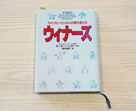 モノへのこだわりがないと話す金丸さん。取り出したのは一冊の書籍だった。当時はやっていた起業家スクールには見向きもせず、100回以上繰り返し読んだ起業のバイブルだ。2人で会社を起こし、営業活動の毎日。訪問先でけんもほろろに断られても、いつも鞄に忍ばせていた本書を開き、紹介される数々のエピソードに勇気をもらった。奮起して頑張った思い出が詰まっている。