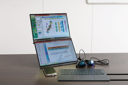 最近の木村さんのお気に入りは、2024年に購入した2画面を備えたASUS製のノートPC。移動外出時も作業効率がとてもいいとのこと。ARグラスを装着すればそこに画面が映り、寝ころんでも仕事ができる。PC作業による肩こりに悩まされていた木村さんだが、これでその悩みも解消したそうだ。