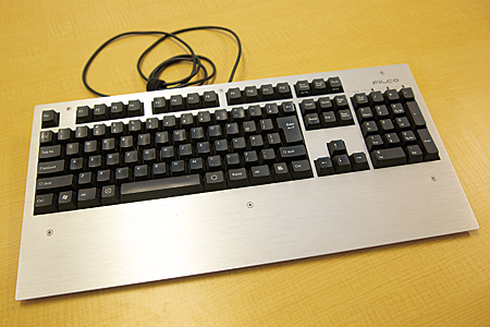 底面が鉄板で、表面がアルミ製のとても頑丈なキーボードは鵜飼さんのお気に入り。もう十数年前から使っているが、おそらく一生壊れないだろうとのこと。もしこれで人の頭を殴ったら、おそらくただではすまない……らしい。