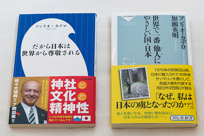 カデロ大使の著書2冊(右側は共著)。日本への造詣の深さには目を瞠る。年齢の話になった時も「私は午だから」とさりげなくおっしゃった