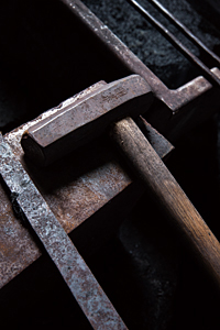 戦前は2代目の父君が使い、戦後は修行時代の吉原さんが使ったハンマー。ちょっと手にしただけで、刀鍛冶の仕事がいかに重労働かが実感できる。もちろん、力だけでなく、繊細な技術と確かな目が、刀匠には求められるのである。
