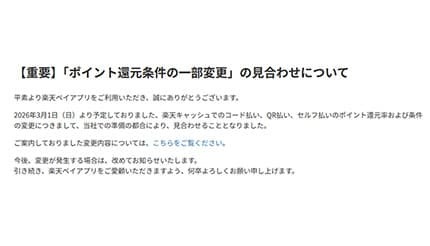 「楽天ペイ」ポイント還元条件の変更・最大還元率引き下げを見合わせ