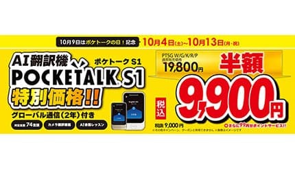ビックカメラ、AI翻訳機「ポケトークS」が半額で買えるキャンペーン開催中!