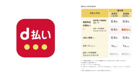 d払いの電話料金合算払い、「dカード以外」のポイント還元率を変更 8月26日から