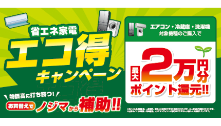 ノジマだけの特典! 省エネ家電で最大2万円分を補助する「エコ得キャンペーン」