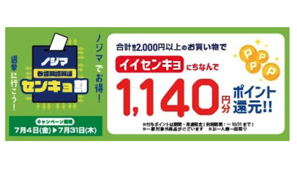 ノジマ、都議選に続き参院選でも「ノジマセンキョ割」!1140円分還元