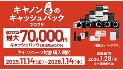 最大7万円のキャッシュバック! キヤノンのカメラ購入を後押しするキャンペーン