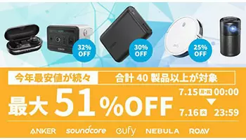 AnkerがAmazonプライムデーで最大51%オフ、40製品以上をラインアップ