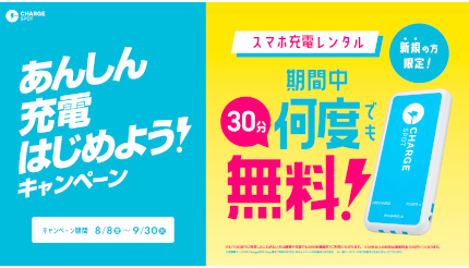 「ChargeSPOT」がお得に試せる! 8月8日から新規ユーザー限定キャンペーン