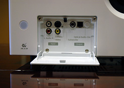 「EMP-TWD1」の最大の特徴、それは何といってもDVDプレーヤーをプロジェクター本体に内蔵してしまったことだろう。それによって、他のプロジェクターのように、DVDプレーヤーとプロジェクターをAVケーブルや音声ケーブルなどでつなぐ作業も必要ない。映画を観るたびにこの作業を繰り返すのが手間だから、あらかじめ配線してプロジェクターを天井から吊したり、据え置きにする。そうなると、それなりの部屋の広さや配置が要求されることになる。それが、「EMP-TWD1」の場合は配線の手間がなく、観たい時観たい場所に本体を置けばいいのだ。白いボディは、和室・洋室どちらでもインテリアとしてもよくマッチする。