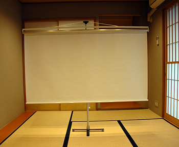 このとき、レンズからスクリーンまでの距離は、ほぼ畳の縦1枚分だった