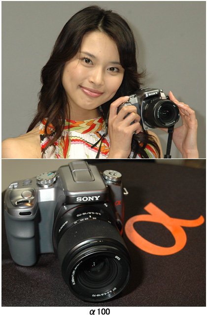ソニー(中鉢良治社長)は6月6日、都内で会見を開き、レンズ交換式デジタル一眼レフカメラ「α100」を7月21日に発売すると発表した。コニカミノルタから受け継いだ「αマウントシステム」を使ったデジタル一眼の第1弾で、北米、欧州やアジアなど全世界でほぼ同時期に発売する。